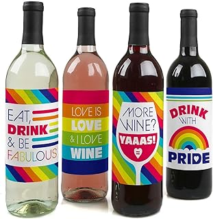 Love is Love - ゲイプライド - LGBTQ レインボー パーティー デコレーション 男女兼用 - ワインボトルラベルステッカー - 4枚セット