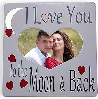 I Love You フォトフレーム ハート型の写真開口部 Loving I Love You to The Moon and Back の言葉 ハートとムーンデザイン バレンタインデー 記念日 結婚 婚約