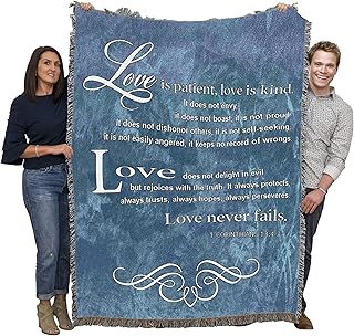 Love is Patient Love is Kind - 聖書- コリント人への手紙13 - コットン織ブランケットスロー - アメリカ製 (72x54)
