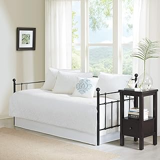 Madison Park Quebec Daybed Size Quilt Bedding Set - White, Damask - 6 Piece Bedding Quilt Coverlets - Ultra Soft Microfiber Bed Quilts Quilted Coverlet