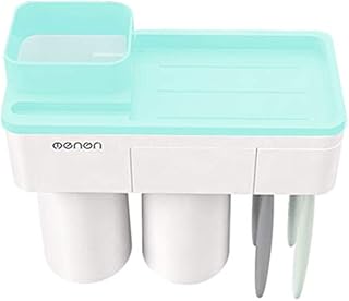 浴室用ラック 洗面台ラック 歯ブラシホルダー 多機能 壁掛け収納 穴あけ不要 安定 耐荷重6kg 携帯電話ホルダー 両面テープと歯磨きコップ付き 日用雑貨 バスルームアクセサリー (2カップ -Green)
