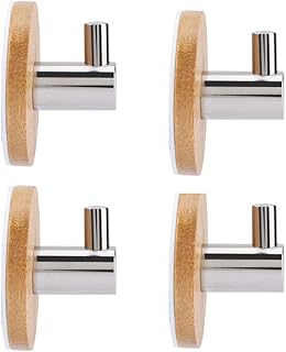 TOPINCN 4pcs入り 強力粘着フック, おしゃれ フックウォール 竹製 壁 ドア 箱 掛けフック はがせる 穴あけ不要 ハンガー ックロー 鍵掛けフック 穴痕がなし(4pcs)