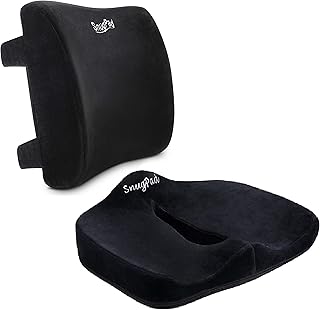 SnugPad 低反発メモリーフォーム 腰枕&シートクッションコンボ 人間工学/整形外科デザイン 腰サポート 洗濯可能な高品質ベルベットカバー付き 滑り止め底面 オフィスチェア&車座席に最適() コンボ(腰枕、シートクッション) ブラック