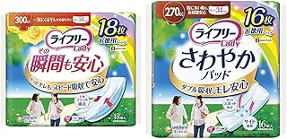 【セット買い】ライフリー その瞬間も安心 女性用尿ケアパッド 300cc 18枚 34cm【一気にくる尿もれが心配な方 】 & さわやかパッド 女性用 270cc 特に多い時も長時間安心用 16枚 34cm【多量尿にも安心】