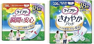 【セット買い】ライフリー その瞬間も安心 女性用尿ケアパッド 300cc 18枚 34cm【一気にくる尿もれが心配な方 】 & さわやかパッド 女性用 220cc 特に多い時も1枚で安心用 18枚 34cm【多量尿にも安心】
