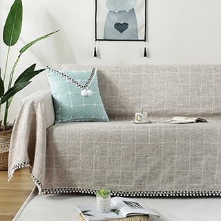 ソファーカバー マルチカバー ブラウン 無地 マルチクロス 格子柄 毛布 かけ布 超便利 フリンジ付き ひざ掛け 簡潔デザイン 滑り止め ブランケット 椅子カバー ホワイト 180*230cm テーブル 90*150CM 絨毯 四季通用 1234人掛け 多機能