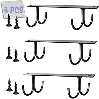OJYUDD 3セット キャビネットフック マグラック 素朴なマグラック コーヒーカップホルダー 吊り下げフック12個付き マグ用ネジ6個 コーヒーカップ キッチン用品ディスプレイ用 (ブラック)