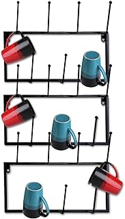 Jucoan 3パック メタルコーヒーマグラック 壁取り付けストレージディスプレイオーガナイザー マグラック カップホルダー 合計21個のフック付き コーヒーマグ/ティーカップ/メイソンジャー用