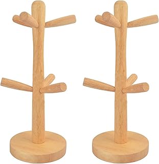 木製マグホルダー 木 カップホルダー マグラック スタンドオーガナイザー ティーコーヒーマグフック マグカップ ツリーストレージ フック6個付き