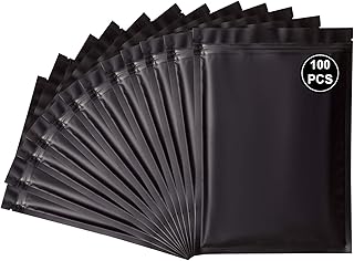 ホイルポーチバッグ 200個 再密封可能な防臭バッグ マイラージップロックバッグ アルミホイルバッグ メタリックマイラーホイル フラットフードストレージバッグポーチ (ブラック)