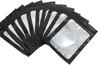 yalansmaiP 再密封可能な防臭バッグ ホイルポーチバッグ クリアウィンドウ付き 臭い防止マイラー食品安全ストレージ(マットブラック、4 x 6インチ)
