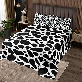 Feelyou 牛柄ベッドスプレッド 牛柄カバーレットセット 子供用 大人用 シンプル モダン 抽象アート キルトベッドカバー アニマル柄 ブラック-ホワイト キルトルーム装飾 3ピース 枕カバー2枚付き クイーンサイズ