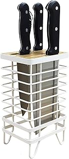dodtazz 包丁スタンド 木製 ステンレス 包丁立て キッチン ナイフホルダー 収納 ラック (ホワイト(白))
