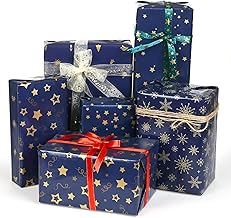 GWHOLE クリスマス プレゼント包装紙 16枚 ラッピッグ ペーパー ギフトブルー おしゃれ 大判 雪の結晶 星 花火【51cm×73cm】