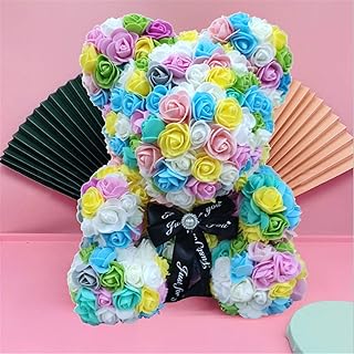 ローズ ベアー フラワー くま ローズ熊 ぬいぐるみ 薔薇 造花 枯れない 花 バラ 母の日 クリスマス ホワイトデー バレンタイン 彼女 プレゼント 出産祝い 結婚祝い お見舞い 誕生日 ギフト インテリア 高さ40cm 虹色