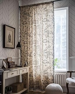 vctops ボーホー レタープリント コットンリネン カーテンパネル タッセル付き ファームハウス カントリースタイル 部屋を暗くするロッドポケット ウィンドウカーテン 1枚 (59インチx87インチ、レター)