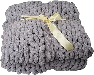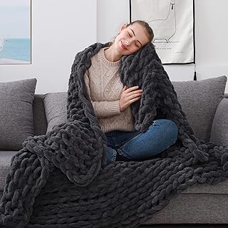 ZonLi チャンキーニットスローブランケット - ハンドメイド 大きなソフトケーブルニットシェニール織 ベッドソファ用 ボーホー ふわふわ 厚手 きつく織りブランケット (ダークグレー、48インチ x 72インチ)