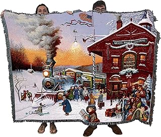 Pure Country Weavers | Great American Train 織スローブランケット フリンジ付き 米国製 サイズ 70x50 7106-T
