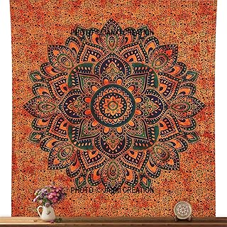 サイケデリック 曼荼羅 ヒッピー タペストリー インド風 壁掛け クイーンサイズ 84 x 90 タペストリー インド製 ハンドメイド ボーホー ボヘミアン タペストリー 寝具 ボヘミアン 壁掛け 花柄プリント ベッドカバー エスニックタペストリー