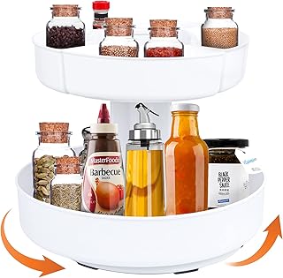 調味料入れ キッチン収納ケース 収納 ラック 調味料ラック 回転収納ボックス 調味料収納 化粧品収納 360度回転 ターンテーブル 滑り止め 省スペース 便利 卓上回転トレー 丸型 冷蔵庫収納 浴室、台所用 25 cm x 2.5 cm
