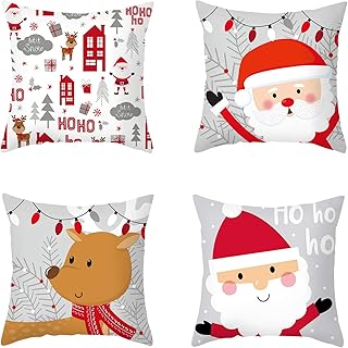 クリスマス枕カバー 4枚 装飾スロー枕カバー 正方形ソファクッション ホームフェスティバル装飾 17.7 x 17.7インチ