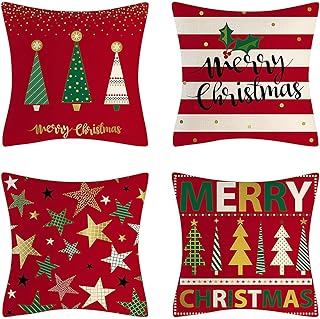 HomeDoReMi クリスマス枕カバー 18x18インチ 4枚セット コットンリネン素材