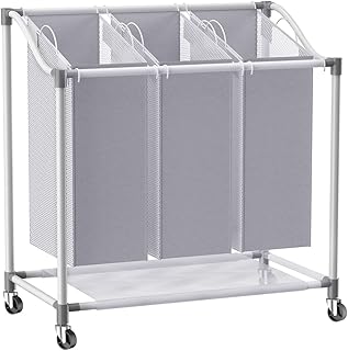 3セクション 洗濯かご ソーターバスケット 高耐久 ローリングランドリーオーガナイザー バスケットカート 取り外し可能なバッグ付き バスルーム 洗面所 寝室 自宅
