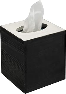 MyGift ビンテージ ブラック&ホワイト 木製 正方形 詰め替え可能 フェイシャルティッシュボックスホルダーカバー