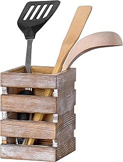 MyGift 素朴な木製調理器具ホルダー 側面にスラット入り ホワイト KIT1838TORWHT