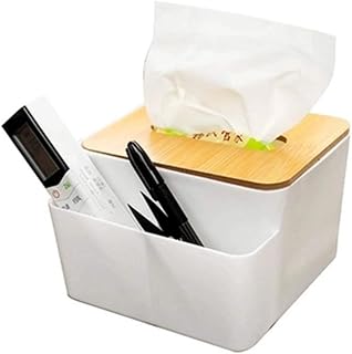 ティッシュ ケース 木蓋付き 木目調 おしゃれ 可愛い インテリア リビング ボックス 卓上収納ケース 小物入れ ペン立て リモコンラック 多機能収納ボックス 寝室 居間 事務室用 (ホワイト)