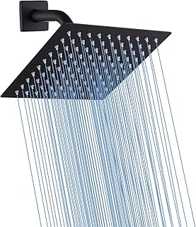 高圧力シャワーヘッド Blucky 8インチ 正方形 レインシャワーヘッド ラグジュアリー モダン マットブラックルック バスルーム レインフォールシャワーヘッド 304ステンレススチール 超薄型