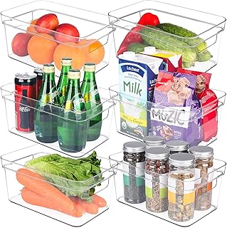 クリアプラスチックパントリーオーガナイザービン 6個 食品ストレージビン ハンドル付き 冷蔵庫 キャビネット キッチン カウンタートップ 食器棚 冷凍庫の整理 収納 BPAフリー